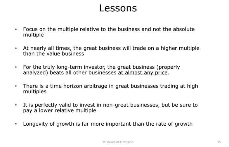 Enough of introduction on him. The main focus will be the content he posted in 2014. The slides could be posted long time ago by Rob Vinall but the ideas remain timeless. He explains that the mistakes of omission is far worst than mistakes of commission as Buffett often alluded to when asked by its fellow investors.
