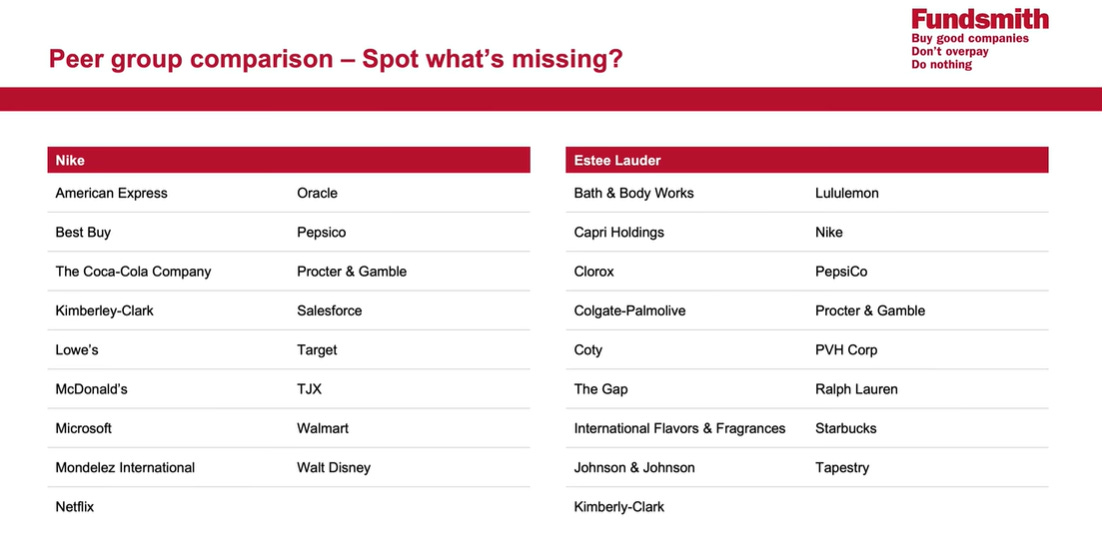 They start by pointing out something that frustrates them: peer remuneration comparisons. For example, with Nike and Estée Lauder, the companies they benchmark against are mostly U.S.-based and often operate in different industries. The logic is clear—U.S. counterparts earn higher pay than their European peers, so why bother comparing to lower-paid equivalents?