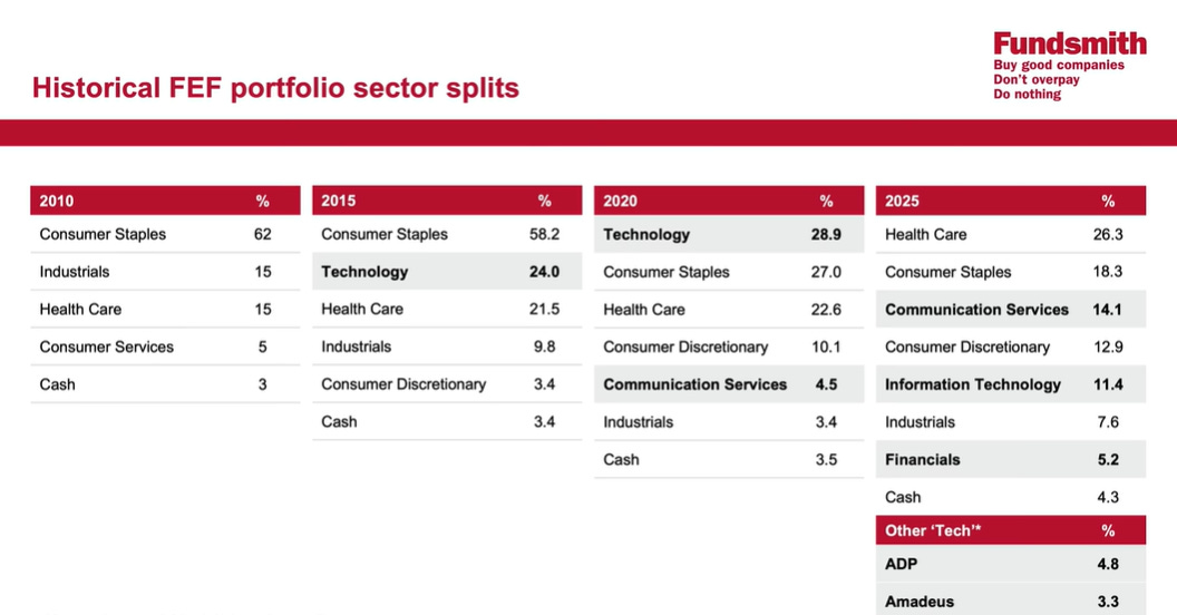 The short answer is that while quality companies may evolve over time, the essence of a high-quality company remains constant. Whether old or new, high quality is defined by strong returns on investment and sustainable growth. The shift in allocation from consumer to technology stocks suggests that one sector is currently perceived as offering higher quality than the other.