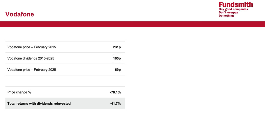 They use Vodafone as an example to make their case. On the surface, the company offers a generous dividend yield, yet the total return for shareholders has been dismal. What went wrong? Echoing the earlier quote, it seems management likely misallocated retained earnings, ultimately eroding value in the process.