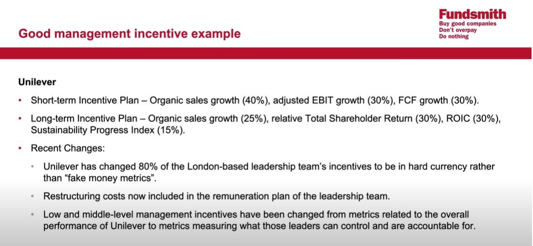 I am curious on your views on management incentive structure, What does good incentive structure look like and which companies have exemplary ones?
