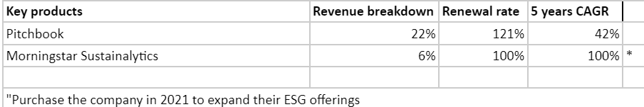 It is time to address the elephants in the room. The 2 key products that the management is investing aggressively for the future growth of the company. It is the Pitchbook and Sustainalytics. It is growing very fast and it is taking more shares for the Morningstar business.