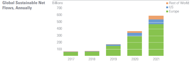 Besides, given the tailwind of ESG funding (refer to above diagram), Morningstar has a real chance to capture the market. However, MSCI seems to have a better chance in succeeding due to their relationship with their customers. It is definitely going to be competitive but an attractive opportunity.