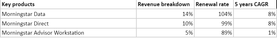 Section 2: Morningstar operating segment: I discussed its key products and growth profile