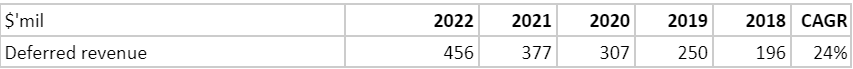 As of today, the float/deferred revenue stands at $456mil. It will continue to be a great way to fund their future growth and it is growing very fast.