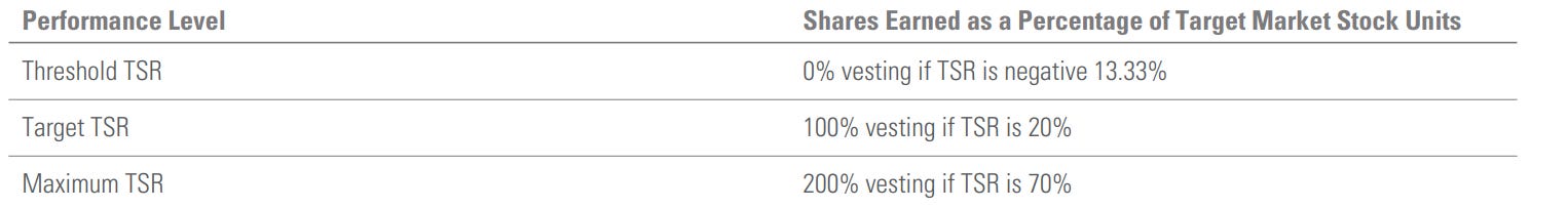 As for equity based compensation, the company has increased its mix to 75% market stock units (MSU) and 25% restricted stock units (RSU). This change should align the director's interest as MSU is vested based on past 3 years total shareholder return (TSR).