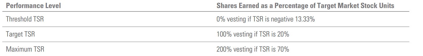 However, it doesn’t seem to have a high threshold as a 7% (keep changing) of total shareholder return (TSR) annually is sufficient for them to be entitled for the MSU that made up a majority of their remuneration. In addition, if there is financial outperformance, they may receive an additional number of shares. (it is called the revenue kicker at 100%-150% of shares earned)
