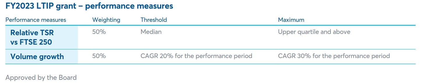 The CEO has a pay of £200k and chooses to abstain from bonus and LTIP since he will be the major beneficiary if the company outperforms. As for the team, they are incentivise by 2 key measures as per below: