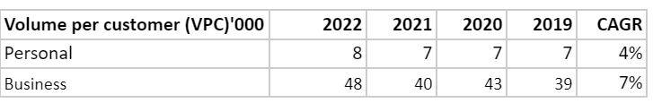It is supported by a research from EDC that, although Personal and micro/SMB customers make up approximately 50% of the overall market volume, they make up the majority (approximately 95%) of the fees paid.
