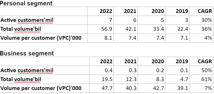 As per Wise prospectus, the annualised volume run-rate of Wise Platform was over £1 billion in 2021. It accounted for a small portion (1.8%) of the total cross border volume of Wise. However, there is no further disclosure afterwards. It could be a good channel for them to grow as the volume should grow with neobanks or fintechs gaining more traction but not easy.